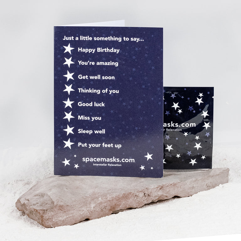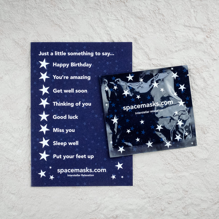 Greetings cards just got an upgrade! Spacecards are a card with a difference – every card contains a single Spacemask and your personal message to brighten someone’s day.